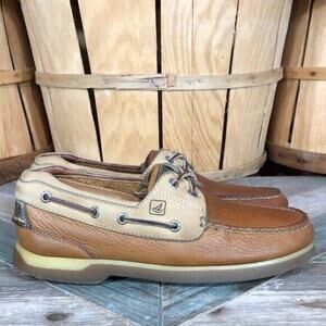 Sperry Mako 2-Eye Canoe Tan Cream Leather Lace-Up Boat Shoes Mens Size 7