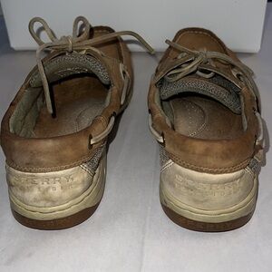 Sperry Top Sider Songfish leather woman’s lace up loafers sz 7 M linen oat