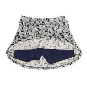 The Sport Haley Women's Navy Floral Skort in size Medium is a stylish and functional piece of activewear perfect for summer and spring sports activities like tennis and golf. Made from a comfortable and breathable blend of nylon and spandex, this skort features a pull-on closure, elastic waist, and zip pocket for convenience. The floral pattern and white color add a feminine touch to the overall athletic design, while the quick-dry fabric and lightweight construction make it practical for active women on the go. Machine washable for easy care, this skort from Sport Haley is a versatile and practical addition to any woman's wardrobe.