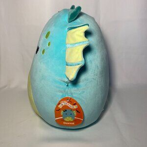 Brand new with tags Squishmallows Dearest the Swamp Monster plush. She is teal with greenish-yellow accents. She stands 12" tall. Dearest is perfect for Halloween with her bat bow and adorable horns. Ages 3+. S12 #2354. Squishdate: 10/26/2023.