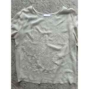 St. Emile Women’s 100% Silk Blouse Embroidered Front White Long Sleeve Size M