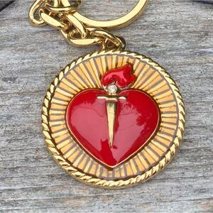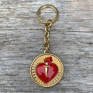 St. John Gold & Red Logo Heart Bag Charm/Keyring. Hang from a purse as a bag charm or use for your keys/fob.