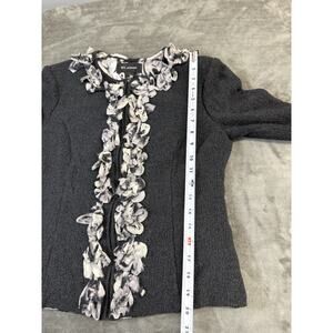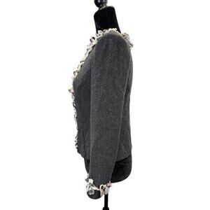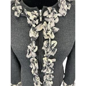 St. John Gray Wool Blend Zip Jacket with Raw Edge Rosette Trim Size 6
