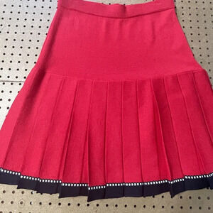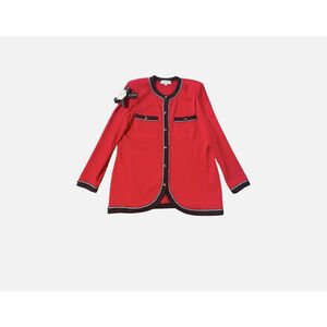 St John Marie Gray 2pc Blazer Skirt Set Womens Size 14 Red USA Buttons STUNNING