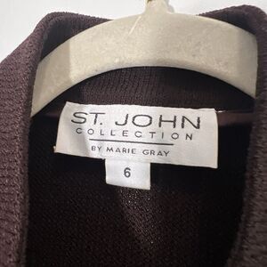 St John Santana Knit Jacket Size 6 Brown Mid Length Long Sleeve Old Money