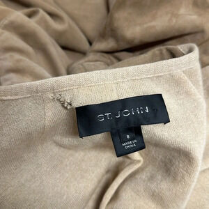 St John 100% Suede Leather Coat Jacket Cashmere Lined Pockets Tan Beige Womens Size 8