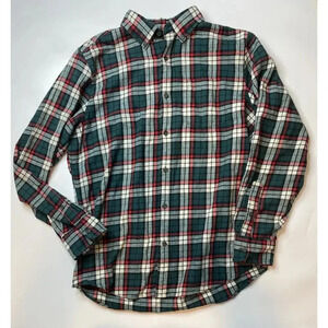 St Johns Bay Button Up Flannel Shirt Men’s Size Medium Plaid Green Red Christmas