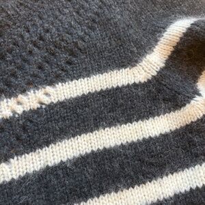 St Roche puff sleeve wool sweater. Charcoal grey with stripes. Puff sleeves