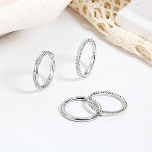 【Silver Plated Stacking Ring】:Dainty rings for women set comes with 4pcs rings in different designs. Provide two colors for selection. Women silver plated rings that don't tarnish are simple and fashionable. Stackable rings are suitable for people of different age groups.