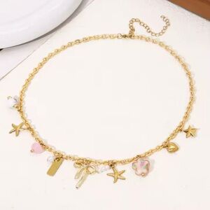 Stainless Steel Starfish Flower bow Charm Pendant Golden Color Necklace