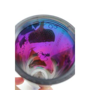 Totally retro feel iridescent / holographic and retro pumpkin design 24 oz cold tumbler with UFOs and a UFO straw topper.