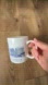 Blueprint blue illustration of the Columbus metropolitan skyline on cream/white glazed ceramic cup