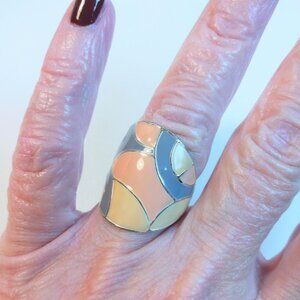 Included with silver tone ring with shades of peach, yellow and gray, size 6.5