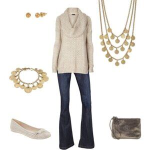 Rio gold coin necklace and earring bundle. Great to wear casually as well as instantly dress up any outfit! Triple strands of antiqued gold plated coins on a three tiered chain.