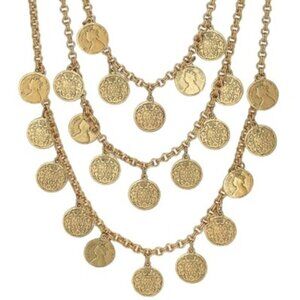💜 Stella & Dot Rio Triple Strand Gold Coin Necklace