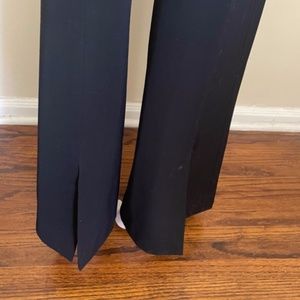 Flat-Front Wide-Leg Wool Trousers w/ Split-Back Hem