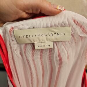 Stella Mccartney Primrose Plisse pleated chiffon midi dress. Gorgeous unique dress as seen on the Stella Mccartney runway. Loose light and flowy with 2 layers of pleated material with alternating white & pink. It moves with you. Curved assymetric hem. Racerback & sleeveless. Hidden zipper under first layer. In excellent condition!