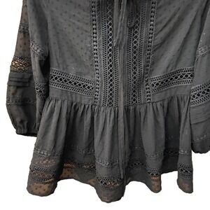 Stellah popover peplum Black Lace babydoll Blouse Top Shirt Size Medium