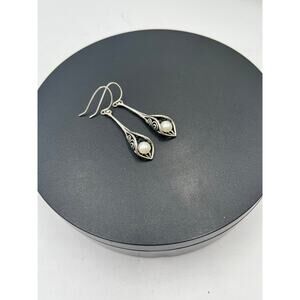 Sterling Silver .925 Calla Lilly White Pearl Drop Dangle Pierced Earrings