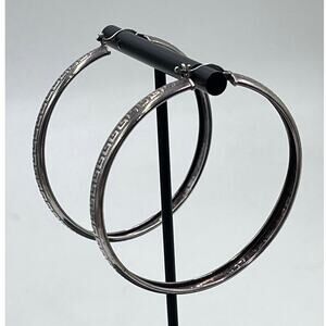 Sterling Silver 925 Stamped Large Greek Pattern 2.25” Hoop Pierced Earrings