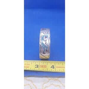 Sterling Silver Bangle Bracelet with Turquoise/Coral Chips- Kokopelli- Navajo