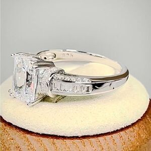 Sterling Silver Clear Emerald Cut CZ Ring New