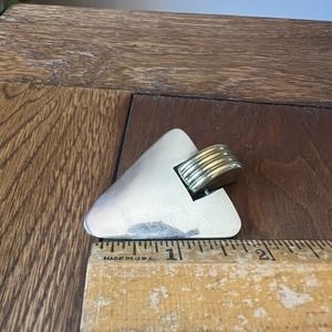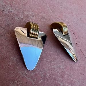 Sterling Silver Clip On Earrings Triangle With Brass Detail Vintage Mexico