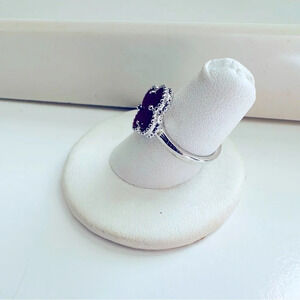 Sterling Silver Four Leaf Clover Carnelian Adjustable Ring