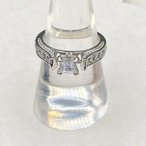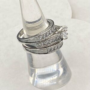 A gorgeous set with 2 sterling CZ bands surrounding a sterling engagement ring with princess cut diamond [CZ]