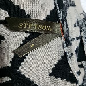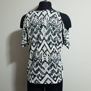 Stetson cream and black cold shoulder rayon top with an aztec pattern.