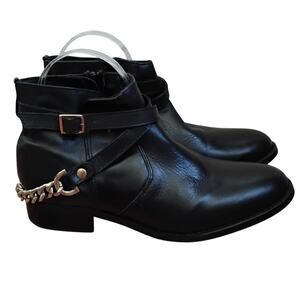 Steve Madden Black Ringo Leather Ankle Boots Size 8M Gold Braid 1in Biker Combat
