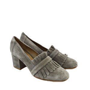 Condition: Gently Used/ Signs Of Wear; marks/scuffs to the soles, upper, and heels. Heel height: 2.5''. Fabric: leather upper. Size 7.5