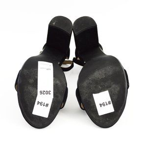 Condition: Gently Used/ Signs Of Wear; Marks/ scuffs to soles, upper, heel, leather. Heel height: 4''. Fabric: leather