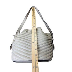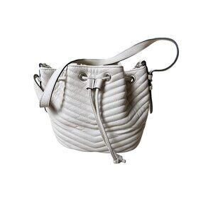 Steve Madden White Quilted Faux Leather Bucket Bag With Drawstring Closure