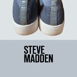 Super cute pair of women's Steve Madden, grey, stretch, slip-on loafers.