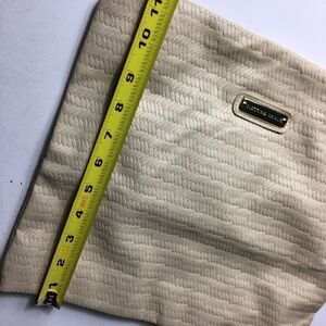 Steve Madden beige weave pattern clutch pre owned in great used condition no tear inside is clean has one zipper compartment and 2 inside pockets zipper closure and magnetic folds.