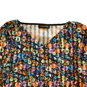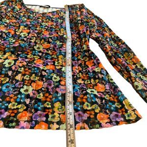 Stine Goya Floral Velvet Wrap Front Ruched Long Sleeve Line Top Multicolor Small