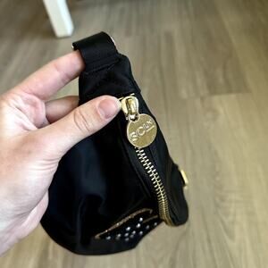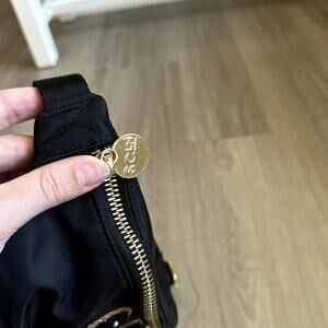Stoney Clover Lane Noir Black Fanny Pack with Disney Minnie Mouse Pearl Bow Patch. Only used for a couple of trips in great pre-owned condition, light scratches on the zipper pull and buckle (pictured as best as possible).