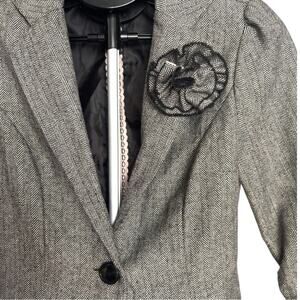 Stooshy Blazer Womens Medium Herringbone Gray Black 3/4 Puff Sleeve Button Y2K