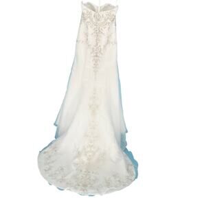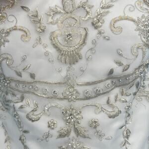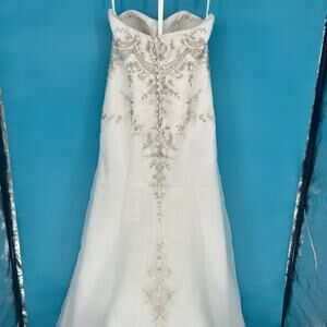 This was a sample at a Bridal Boutique and is in good condition with some light staining on the interior, some loose threads, etc.