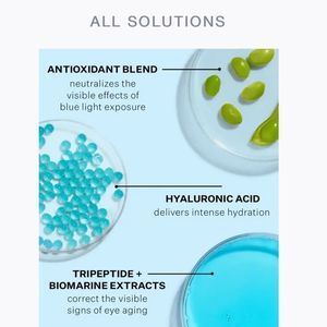 Dual-phase, swirled gel-cream for eyes intensely hydrates + visibly corrects the key signs of eye aging while neutralizing the visible effects of blue light exposure. The cooling gel phase combines Hyaluronic Acid, Peptides, Blue Daisy and BioMarine Extracts to minimize the look of lines, dark circles and puffiness. The nourishing cream phase features NIA-114™ and antioxidants to reduce the impact of blue light and lifestyle stressors to skin.