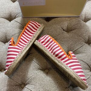 Striped Canvas Espadrilles. Super comfortable featuring orange trim to make these bright pink striped espadrilles stand out. NEW WITH BOX