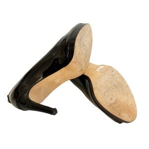 Stuart Weitzman Black Perforated Peep Toe Patent Leather Heel Pumps