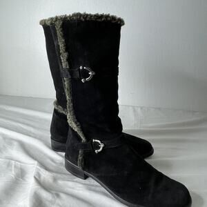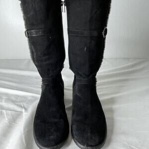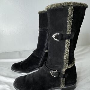 Stuart Weitzman Boots Womens Size 7.5 Black Suede Shearling Lined Tall Winter Zip