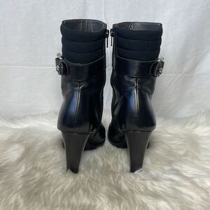 Stuart Weitzman Buckeroo Black Leather Buckle Trim High Heeled Boots Sz 9.5