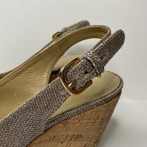 Stuart Weitzman Jean Glitter Slingback Cork Platform Sandals Women's Size 7M