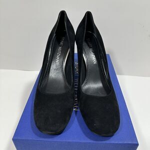 Stuart Weitzman Mary Pump Square Toe Block Heel Black Suede Women 8 N NIB $475