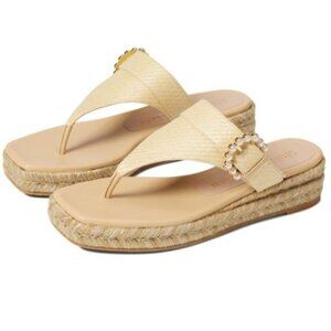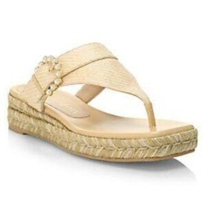 Stuart Weitzman Metallic Pearly-Buckle Thong Espadrille Sandals – Wheat 9 NWT