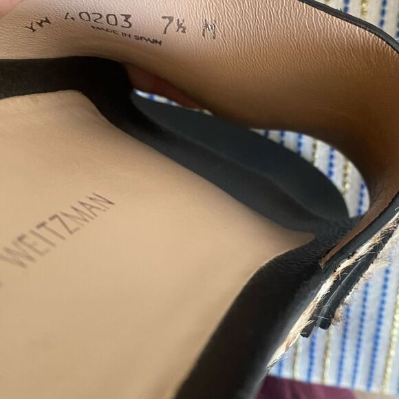 Stuart Weitzman Sandals Sz 7.5 black leather Animal Print Silver Metal Chains