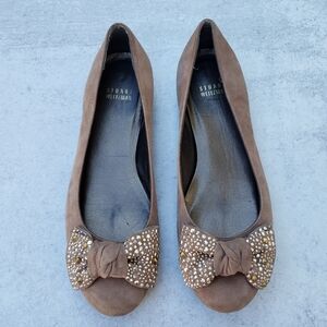 Stuart Weitzman Suede Embellished Bow Ballet Flats Sz 7.5